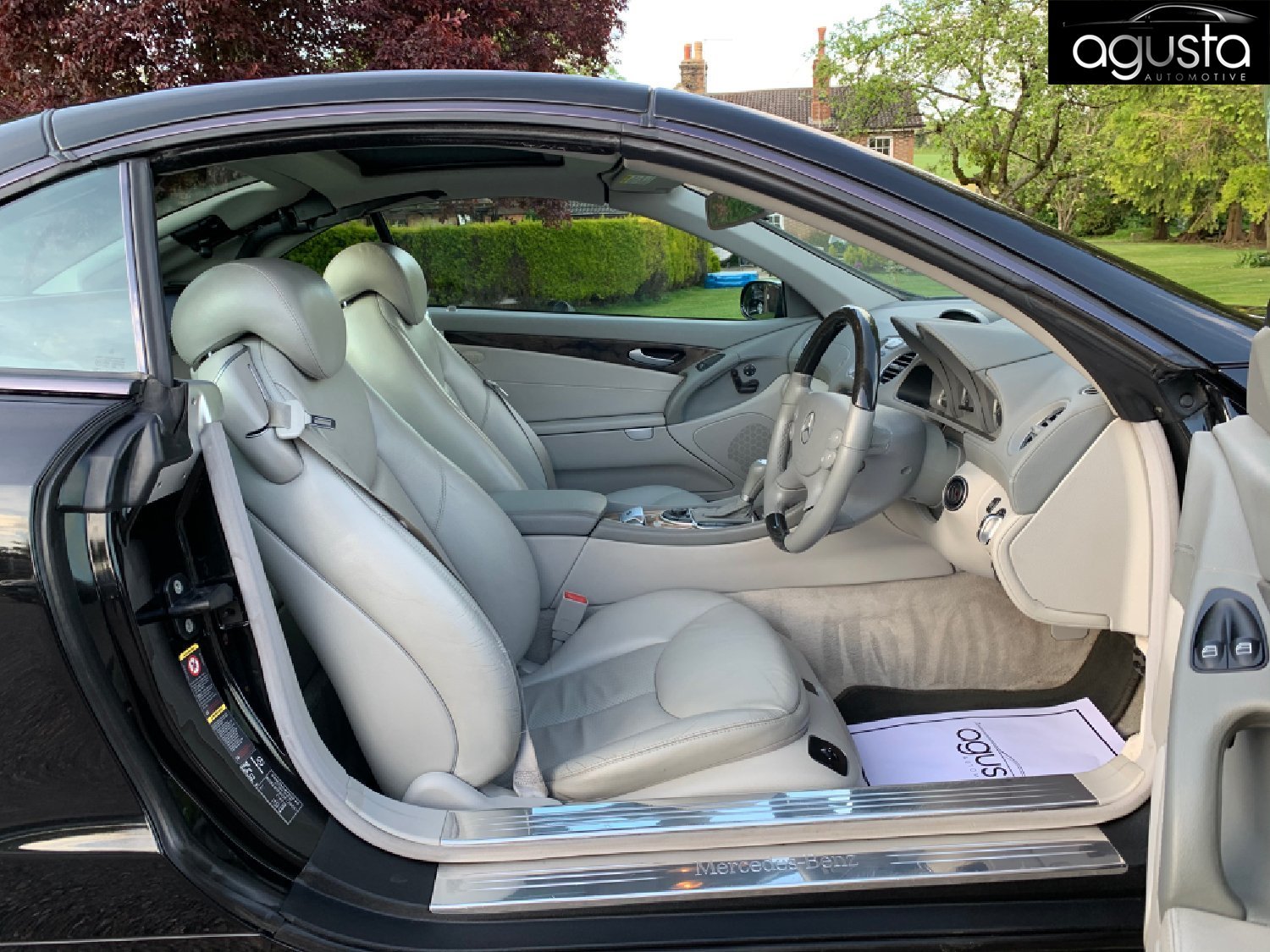 Stunning Mercedes Benz SL350 3.5 V6 Cabriolet, Finished in beautiful obsidian black metallic with a light grey leather interior and Ash wood inlays. Covering a low 50000 miles from new with full service history. The usual SL refinements include Wide screen Sat Nav, Electric memory seats, Wood steering wheel, Heated steering wheel, Panoramic glass roof, 19” AMG Alloys, PDC front & rear, Climate control with A/C, 6 CD changer, Xenon headlights, Keyless entry with push button start, Mercedes over carpets, Electric steering column, Wind deflector & Roll bar. A superb Mercedes roadster with the finest German build quality! This car really does make you feel special and looks Tremendous on the road!
